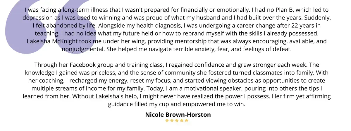 Dr. Lakeisha McKnight is the visionary CEO of The ILEAD Company LLC, specializing in leadership development, network marketing, and wealth building. As a certified John Maxwell Speaker, Trainer, and Coach, she brings a wealth of experience from her successful career as a network marketer, homeschooling mother, and wife of an Army veteran. Dr. McKnight's expertise in cryptocurrency and digital finance has made her a sought-after coach, empowering individuals, especially women, to achieve financial freedom and create generational wealth. Through The ILEAD Company and its Leadership TKO brand, which stands for "Truths that Keep the Overcomer," she inspires and equips Kingdom ambassadors to grow their influence, impact, and income, integrating Kingdom principles with modern strategies for lasting success.